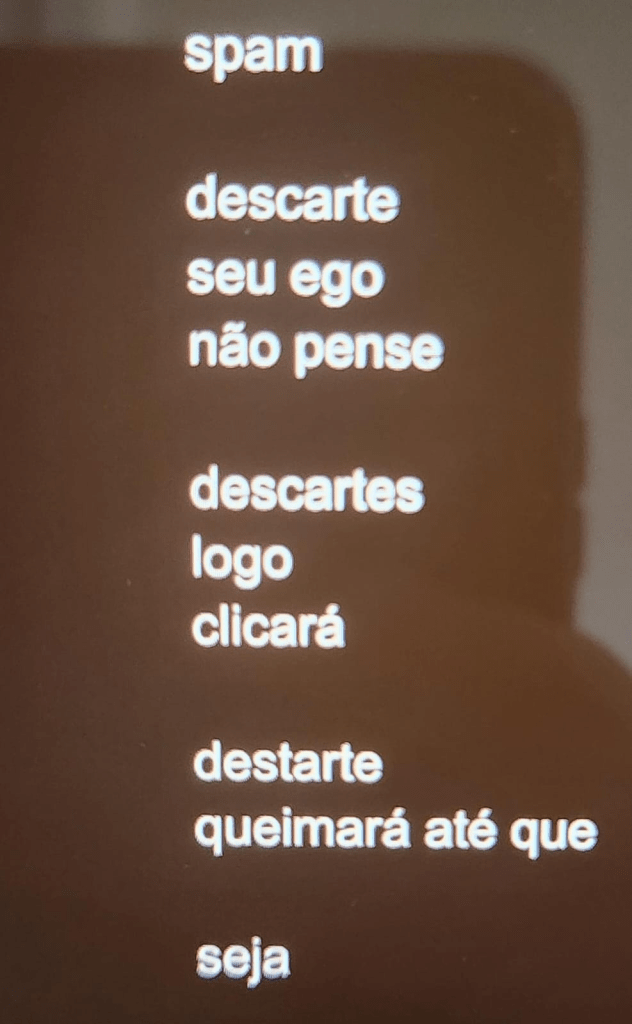 Agora seus miolos estão espalhados pela rua. Alguns transeuntes tiram fotos, outros até recolhem os restos de maneira escondida. Seus órgãos têm proteínas da almejada vaca niilista. Visão estupenda.
